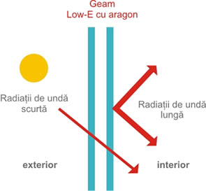 Aproximativ 85% din suprafaţa totală a unei ferestre o reprezintă geamul. Din această cauză pierderile de căldură sunt mult mai mari prin geam decât prin profilul ferestrei. Astfel cu ajutorul geamului termopan Low-E puteţi reduce foarte mult costurile de climatizare a locuinţei dumneavoastră. Mai mult decât atât dacă doriţi o izolare termică dar mai ales fonică şi mai bună, vă recomandăm un geam termopan Low-E cu argon. Argonul, prin mobilitatea redusă a moleculelor ce îl compun, asigură o deosebită reducere a zgomotului.